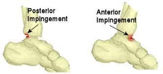 • Anterior impingement: Common in athletes; caused by repeated dorsiflexion (e.g., kicking or squatting)
